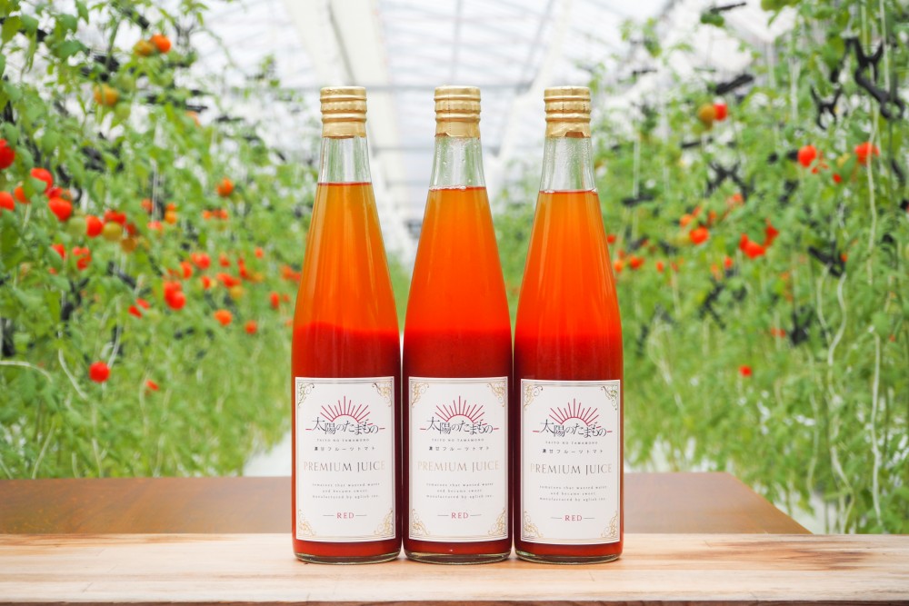 濃甘フルーツトマト「太陽のたまもの」100%のジュースです。トマトの旨みと、フルーティーさを最大限に活かし、さらっと流れるような喉ごしを追求したプレミアムジュースです。